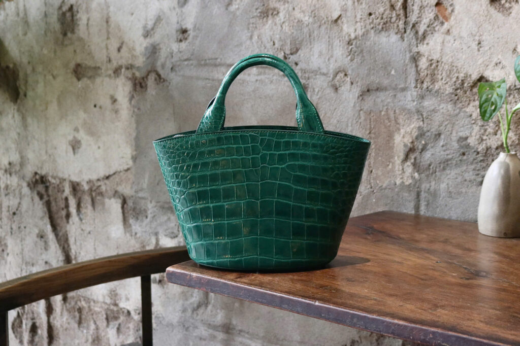 Crafted from genuine crocodile leather, the bag showcases a naturally luxurious texture and enduring resilience. Its structure is reinforced with American-made smooth threads, selected for their durability and immaculate finish.